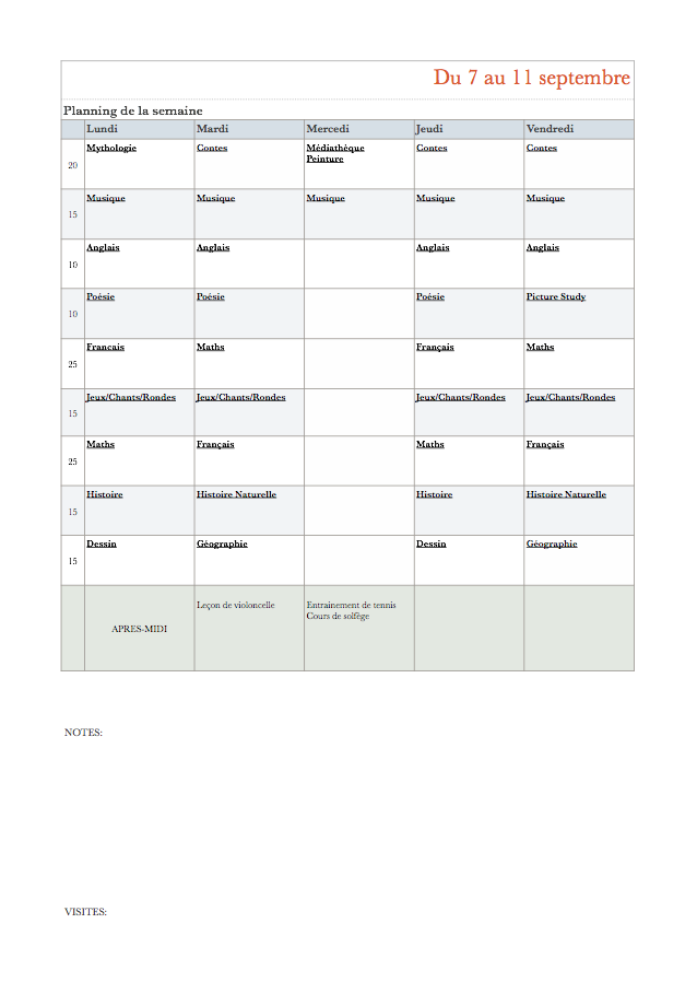 Pour ceux qui voudraient en savoir plus sur la façon d’organiser un planning Charlotte Mason je vous recommande cette excellente série de billets (en anglais): http://www.sabbath-mood-homeschool.com/p/preparing-cm-schedule.html